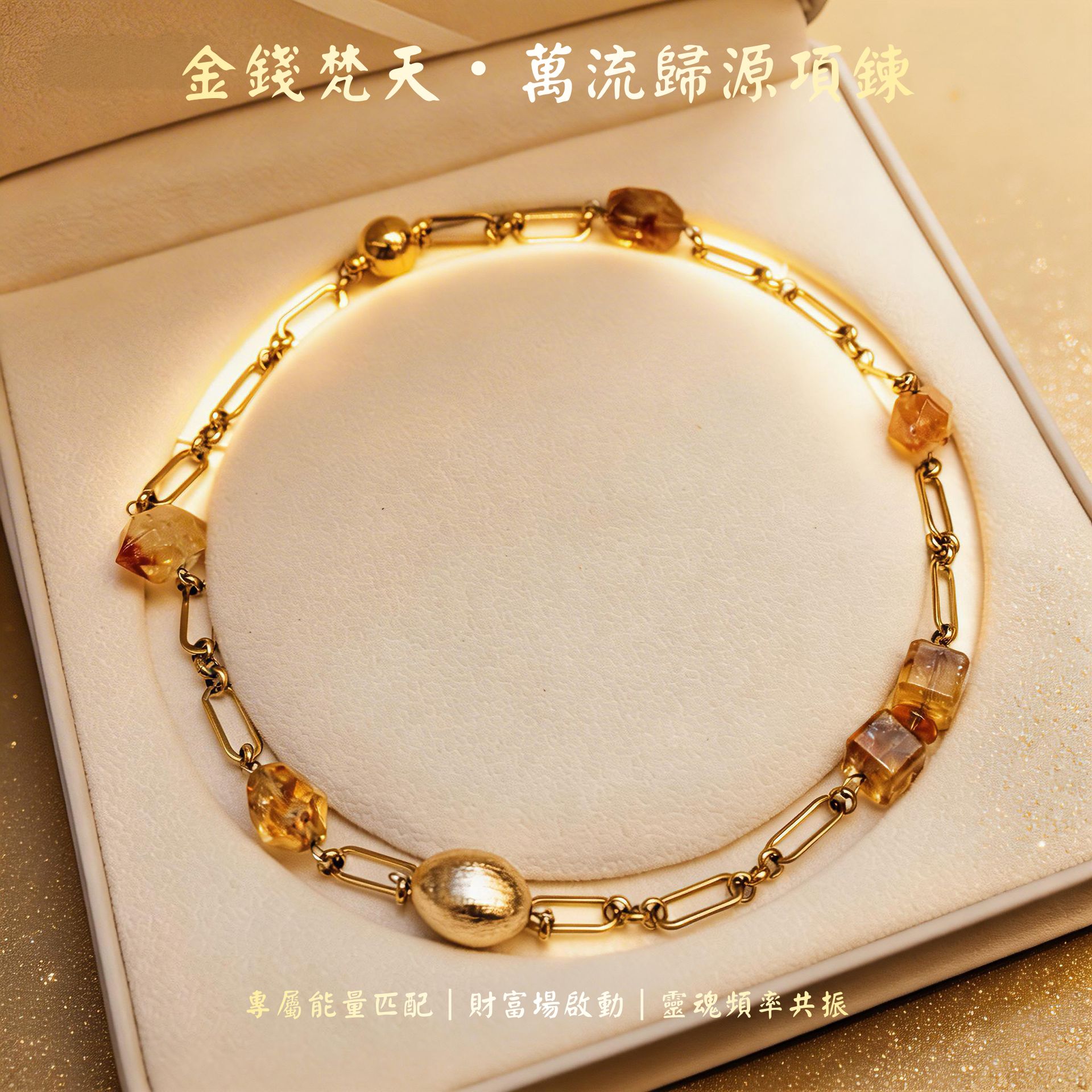 不是你選它 是它選你 金錢梵天・萬流歸源項鍊 透過專屬能量匹配儀式 為你啟動財富場,調頻靈魂頻率 讓金錢流動回到你本該豐盛的位置。 每一條皆經過能量感應挑選 不是量產飾品 而是屬於你的財富識別符號